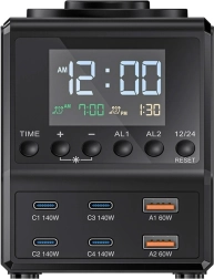 Le BlitzWolf BW-FW10 combine les fonctions d’un réveil moderne avec une station de charge avancée 10‑en‑1. Il recharge jusqu’à 8 appareils simultanément grâce à quatre ports USB‑C, deux USB‑A et deux zones de charge sans fil. La puissance maximale de 240 W et la prise en charge de PD 3.1 (jusqu’à 140 W), PPS, QC 4.0 garantissent une recharge rapide et efficace des smartphones, tablettes, ordinateurs portables et consoles.