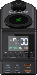 Réveil élégant et station de charge puissante en un seul appareil. Le BlitzWolf BW-FW10 offre jusqu’à 240 W, 6 ports (4× USB‑C, 2× USB‑A) et 2 zones sans fil (15 W pour téléphone, 5 W pour montre). Il prend en charge la charge rapide PD 3.1, PPS et QC 4.0, gère les ordinateurs portables dont le MacBook Pro 16 et permet un double réveil avec un écran LED clair. Une protection multicouche assure une charge sûre.