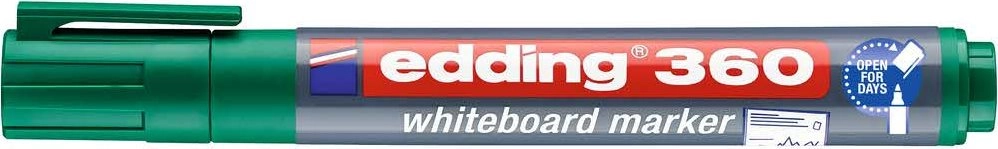 Marqueur vert fiable pour tableaux blancs avec une pointe ronde et un effaçage à sec sur les surfaces non poreuses. Offre une large compatibilité avec différents tableaux, une encre pigmentée à faible odeur sans acétate de butyle et une épaisseur de trait de 1,5 à 3 mm. Grâce à l’encre cap-off, il peut rester ouvert un certain temps sans sécher.