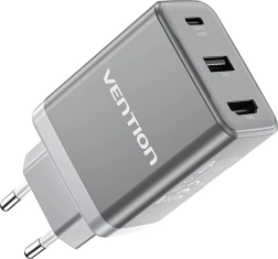 Le chargeur secteur compact Vention avec technologie GaN combine charge rapide PD jusqu’à 65 W, ports USB‑C + USB‑A et HDMI 4K@60 Hz. Chargez jusqu’à trois appareils simultanément, connectez un écran externe et profitez d’une compatibilité universelle avec Windows, macOS, Android et plus encore – en toute sécurité grâce à une protection intelligente contre les surtensions, la surchauffe et les courts‑circuits.