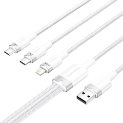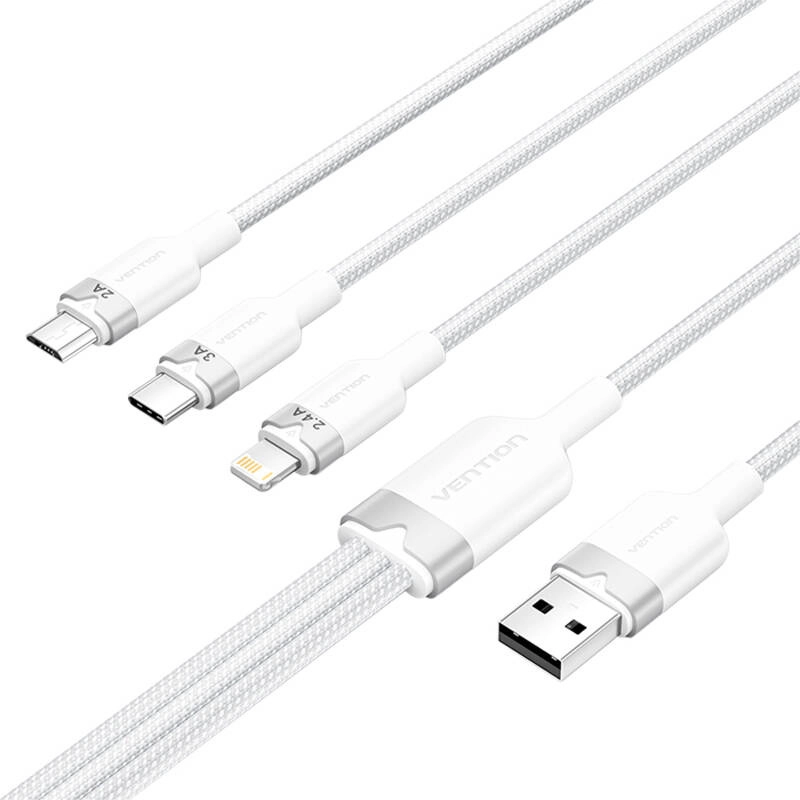 Vous cherchez un seul câble pour tous vos appareils ? Le Vention 3‑en‑1 combine les connecteurs Lightning, USB‑C et Micro‑B, ce qui permet de recharger facilement les téléphones APPLE, SAMSUNG, XIAOMI ainsi que les accessoires plus anciens. Grâce à un courant max. de 3 A et une puissance allant jusqu’à 60 W pour l’USB‑C, vous profitez d’une charge rapide et sûre, tandis que 480 Mb/s assurent une synchronisation fluide des photos, de la musique et des documents.