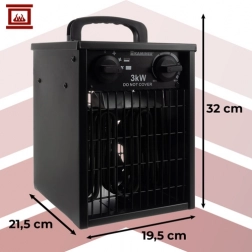Le radiateur électrique KAMINER d’une puissance de 3000 W est idéal pour la maison, le bureau, l’atelier ou le chantier. Grâce à un débit d’air puissant de 514 m³/h, il atteint rapidement la température souhaitée et la maintient à l’aide d’un thermostat auto-réarmable. La protection IPX4 garantit une utilisation sûre même en environnement humide.