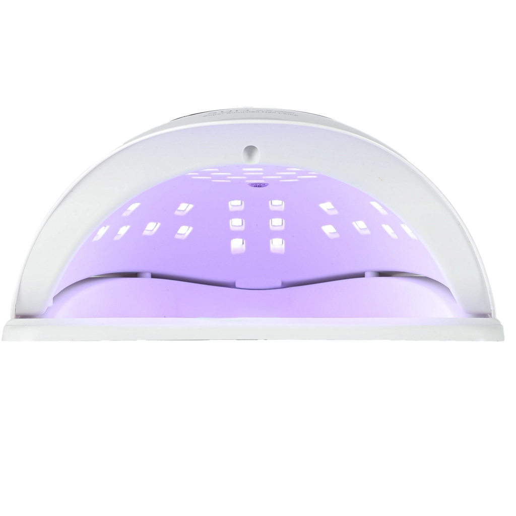 La disposition dense de 45 LED et le double spectre 365 + 405 nm garantissent une couverture homogène de l’ongle et un résultat parfait sans zones d’ombre.