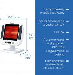 La lampe infrarouge BEURER IL 60 procure une chaleur profonde apaisante qui soutient le métabolisme et peut accélérer la convalescence en cas de rhume ainsi que soulager les tensions et douleurs musculaires. Grâce à sa puissance élevée de 300 W, de courtes séances suffisent et se règlent facilement selon vos besoins.
