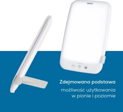 Le design est soigné dans les moindres détails : inclinaison progressive, possibilité de position verticale ou horizontale, support amovible et dimensions compactes permettant une installation presque partout. La lampe est un dispositif médical destiné à compléter la lumière du jour en cas de déficit.