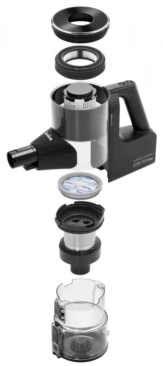 VMB XPro Dark est un aspirateur sans fil léger et maniable pour le nettoyage quotidien des sols durs, tapis et tissus d’ameublement. Le mode Auto avec le DustSensor intelligent augmente la puissance là où la saleté est plus présente et intensifie automatiquement l’aspiration sur les tapis. L’électrobrosse LED révèle la poussière sous le lit ou le canapé et l’écran LCD affiche clairement l’état de la batterie, le mode et les alertes de vidage du bac ou de nettoyage du filtre.