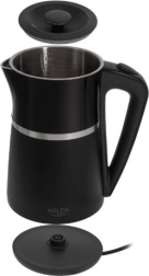 Vous cherchez une bouilloire fiable, rapide et sûre pour un usage quotidien ? L’ADLER AD 1355, avec un volume de 1,7 l, propose un intérieur hygiénique en inox et une double paroi qui améliore l’isolation thermique et maintient la surface plus fraîche au toucher. Son élégant coloris noir s’intègre parfaitement dans une cuisine moderne.