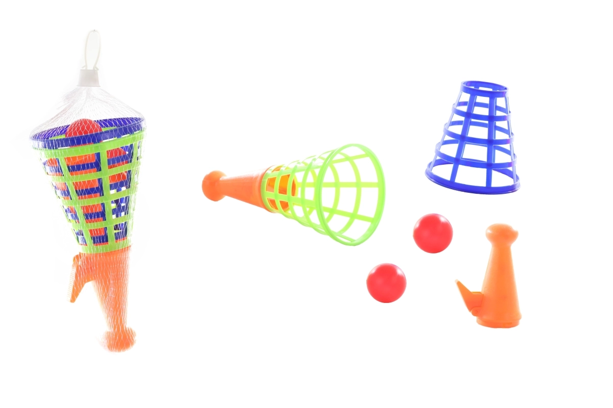 Un ensemble ludique pour jouer activement à la maison comme en plein air ! Paniers lance-balles en plastique dans un filet pratique contenant 2 paniers et 2 balles. Commande simple, structure légère et dimensions env. 20 × 10 × 10 cm pour une utilisation confortable. Idéal pour les enfants dès 3 ans afin d’entraîner coordination et réflexes.