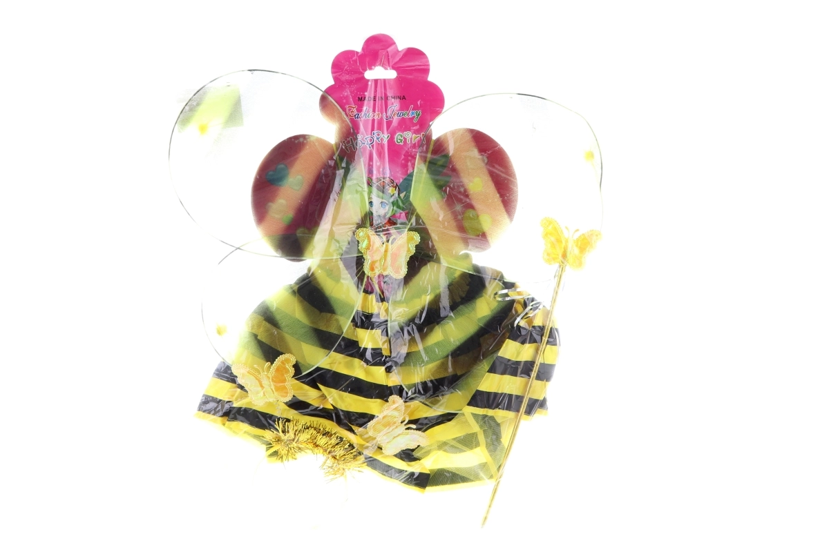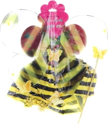 Des ailes translucides avec passants élastiques se portent confortablement dans le dos et donnent au costume une apparence d’abeille marquée.
