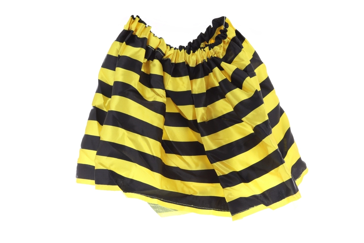 Jupe brillante jaune‑noir avec élastique, facile à enfiler et bien ajustée – idéale pour danser et s’amuser.