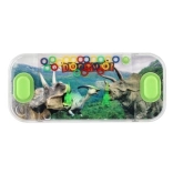 Ce jeu d’eau de poche très apprécié, à motif dinosaures, est le compagnon idéal en voiture, en vacances ou pour les moments libres à la maison. En appuyant sur deux boutons latéraux, vous mettez les anneaux en mouvement dans l’eau et essayez de les enfiler sur les chevilles. Un principe simple et un motif attrayant garantissent un divertissement sans écran.