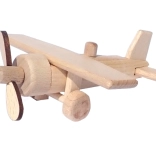 L'avion en bois est soigneusement confectionné à partir de hêtre naturel, simplement ciré et poli pour préserver son aspect naturel. Grâce à son hélice et roues mobiles, ce modèle offre une expérience de jeu réaliste. Sans bords tranchants, il est sûr même pour les plus petits, ce qui le rend également adapté pour une utilisation au bac à sable. De plus, il peut servir d'élément décoratif grâce à son design classique.