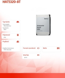 Disque dur 3,5" Synology haute performance d’une capacité de 8 To, conçu pour les NAS d’entreprise exigeants et un fonctionnement en continu. Il offre une vitesse de 7200 tr/min, une mémoire cache de 512 Mo et une interface SATA III 6 Gb/s pour un transfert de données fiable et rapide. Avec un MTBF de 2 millions d’heures et une charge de travail annuelle de 550 To, il assure une fiabilité de premier plan, tandis que la technologie de cache d’écriture persistant aide à protéger les données en cas de coupure de courant.