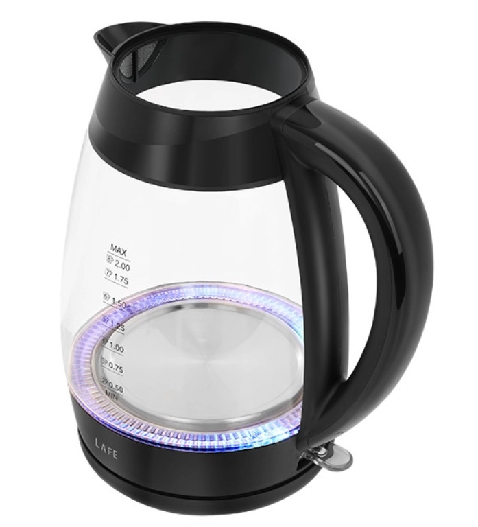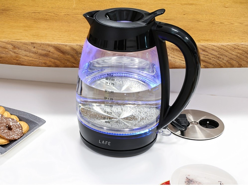 Élégante et pratique, la bouilloire électrique LAFE Essential XL d’une capacité de 2 litres offre une ébullition rapide, un récipient en verre clair et un éclairage LED bleu. Elle propose une puissance de 2200 W, l’arrêt automatique et une protection en cas de manque d’eau – idéale pour la maison comme pour le bureau.