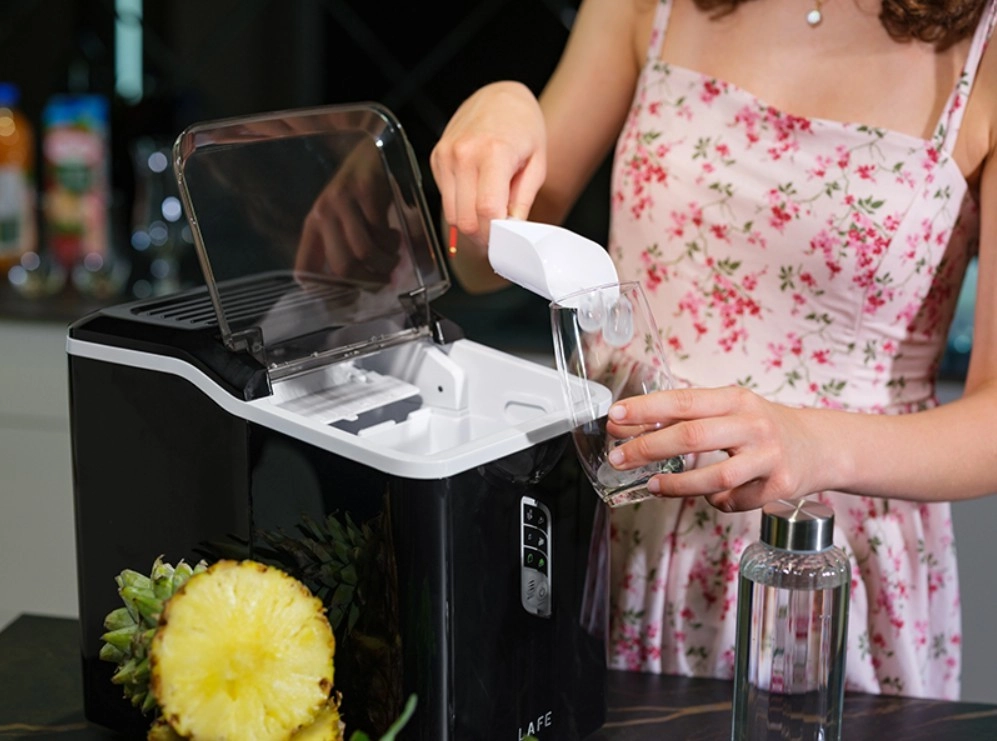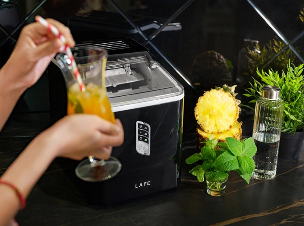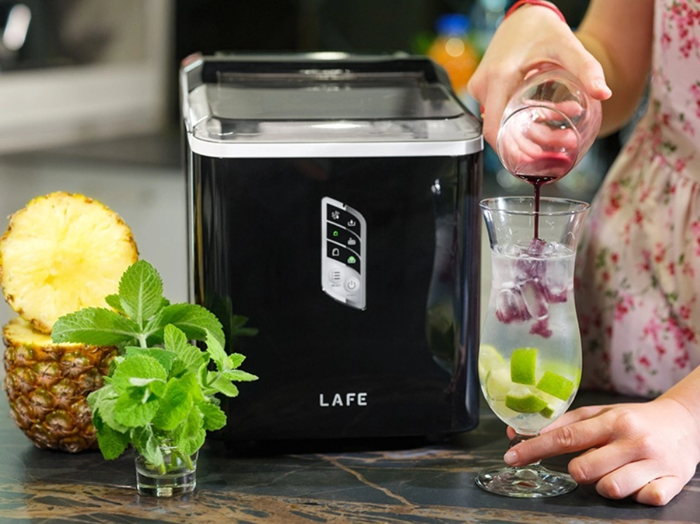 La machine à glaçons compacte LAFE IceTwist Pro prépare les premiers cubes en 8 minutes et produit jusqu’à 12 kg de glace par jour. Grâce à son réservoir d’eau de 1,5 l, son contrôle électronique, le réglage de la taille des glaçons et la fonction d’auto-nettoyage, elle est idéale pour la maison, le bureau et les petites fêtes.