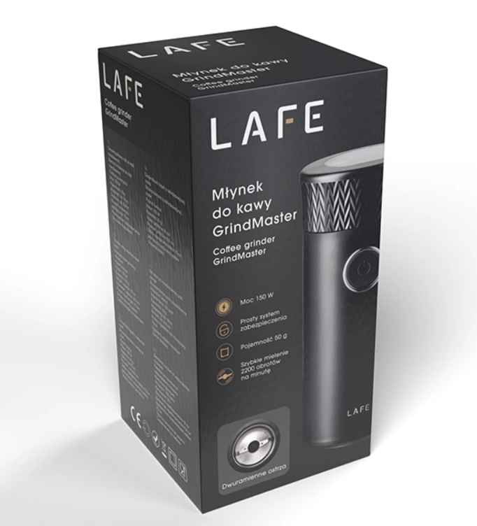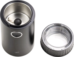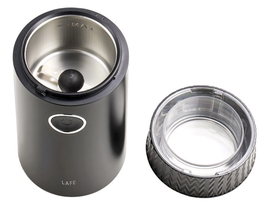 Découvrez le confort de la préparation du café à la maison avec le moulin LAFE GrindMaster, stylé et compact. Il suffit de verser les grains, de fermer le couvercle et d’appuyer sur le bouton – le moteur puissant et les lames en inox robustes s’occupent du reste. Le couvercle transparent permet un contrôle visuel de la finesse de mouture.