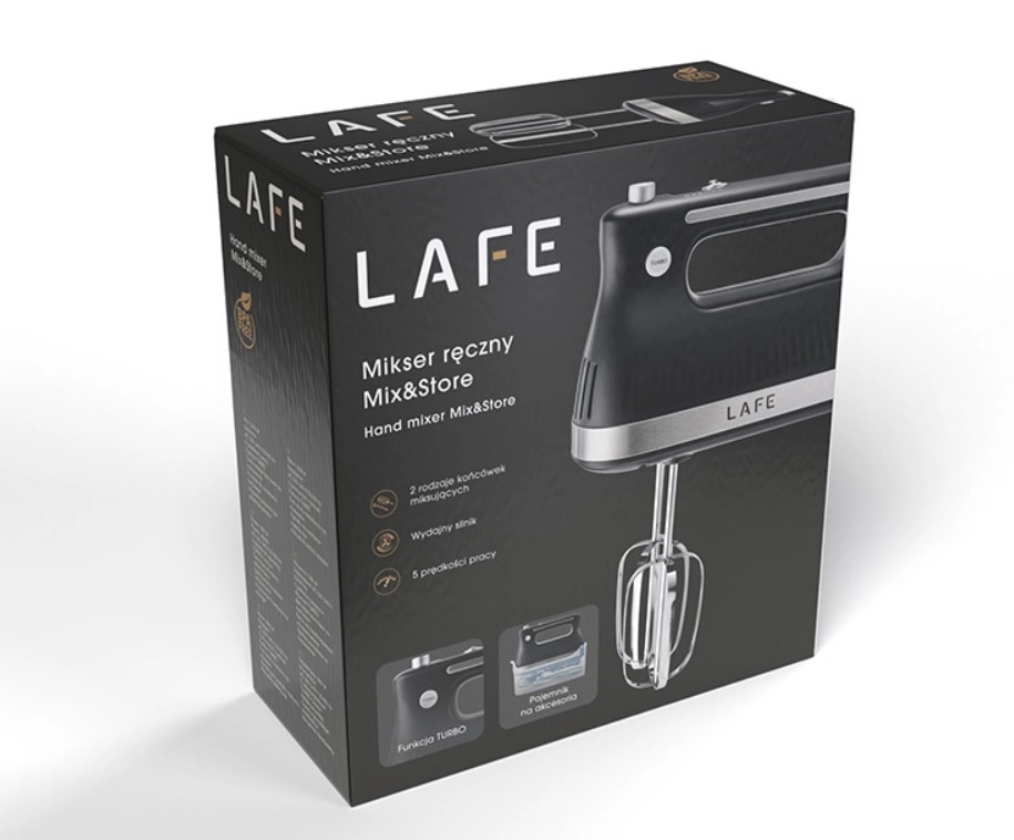 Le mixeur manuel LAFE Mix&Store est un allié fiable pour la pâtisserie et la cuisine au quotidien. Il offre une puissance de 500 W, 5 vitesses et une fonction Turbo pour une puissance supplémentaire. Le coffret comprend 2 types d’accessoires (fouets et crochets pétrisseurs) ainsi qu’une boîte de rangement pratique, pour garder tout à portée de main et bien organisé.