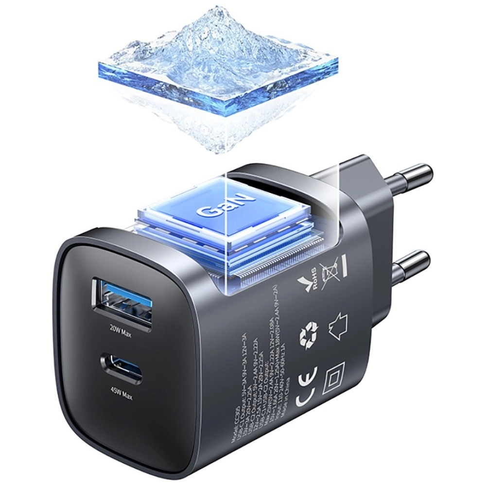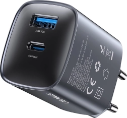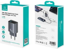 Ce chargeur moderne utilise la technologie GaN hautement efficace, qui apporte des dimensions plus compactes, moins d’échauffement et un meilleur rendement par rapport aux adaptateurs classiques. La puissance totale de 45 W permet une charge rapide des appareils les plus récents et, grâce à la prise en charge PD/QC, il gère aussi certains ordinateurs portables alimentés en USB‑C jusqu’à 45 W.