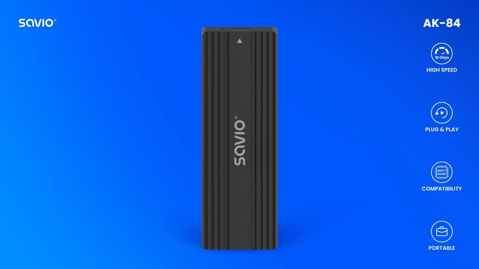 Élégant et robuste, le boîtier SAVIO AK‑184 transforme instantanément votre SSD M.2 (NVMe et SATA/NGFF) en un stockage portable performant. Grâce à l’USB 3.1 Gen 2, il atteint jusqu’à 10 Gb/s, pour transférer gros fichiers, sauvegardes et jeux en un clin d’œil. Ses dimensions compactes et son poids de seulement 44 g en font le compagnon idéal en déplacement.
