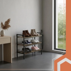 Le cadre thermolaqué stable, trois étagères spacieuses et les embouts de protection antidérapants assurent une longue durée de vie, la sécurité de vos sols et un rangement confortable des chaussures, des baskets aux bottes. Le montage se fait en un rien de temps – tout le nécessaire est inclus dans l’emballage.