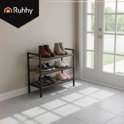 Organisez votre entrée ou votre dressing avec le meuble à chaussures RUHHY, qui combine une structure en acier solide avec des étagères en MDF au décor bois attrayant. Grâce à son design loft polyvalent, il s’intègre aussi bien dans les intérieurs modernes que classiques et offre une capacité maximale pour un encombrement minimal.