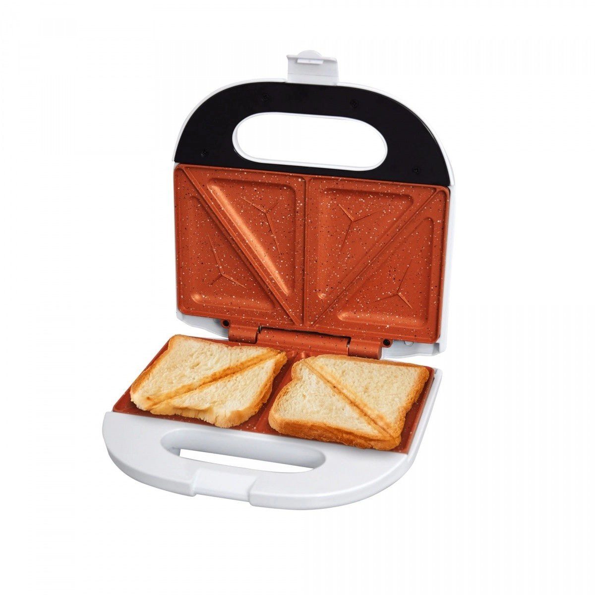 La paire de plaques triangulaires cuit uniformément le pain et la garniture. Idéal pour des petits-déjeuners, en-cas et dîners rapides.