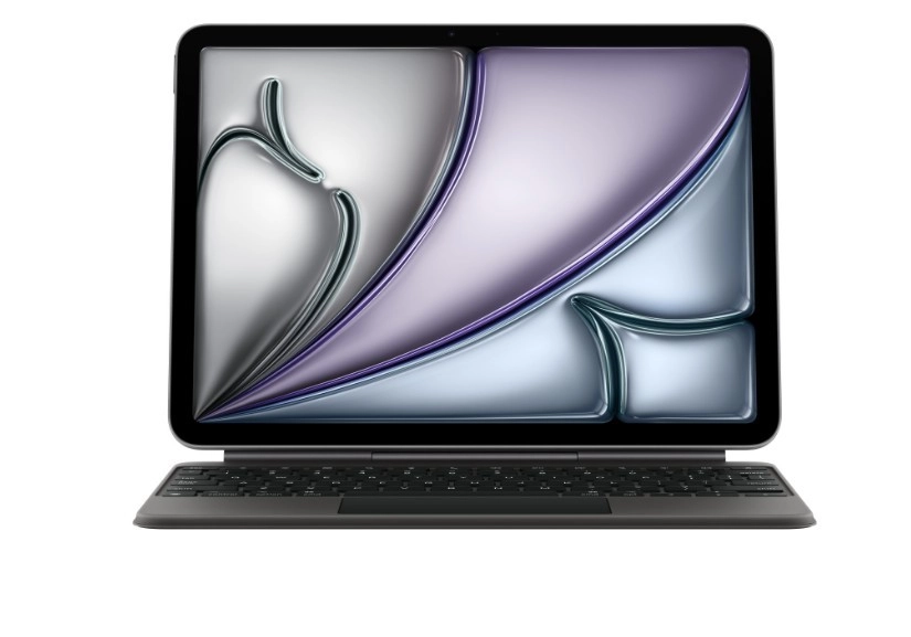 Le Magic Keyboard pour iPad Air 11" (M3) offre une frappe confortable avec un mécanisme à ciseaux et une course de 1 mm, un grand trackpad en verre avec prise en charge des gestes Multi‑Touch et un curseur précis, ainsi qu’une rangée pratique de 14 touches de fonction pour gérer rapidement la luminosité, le volume et d’autres raccourcis.