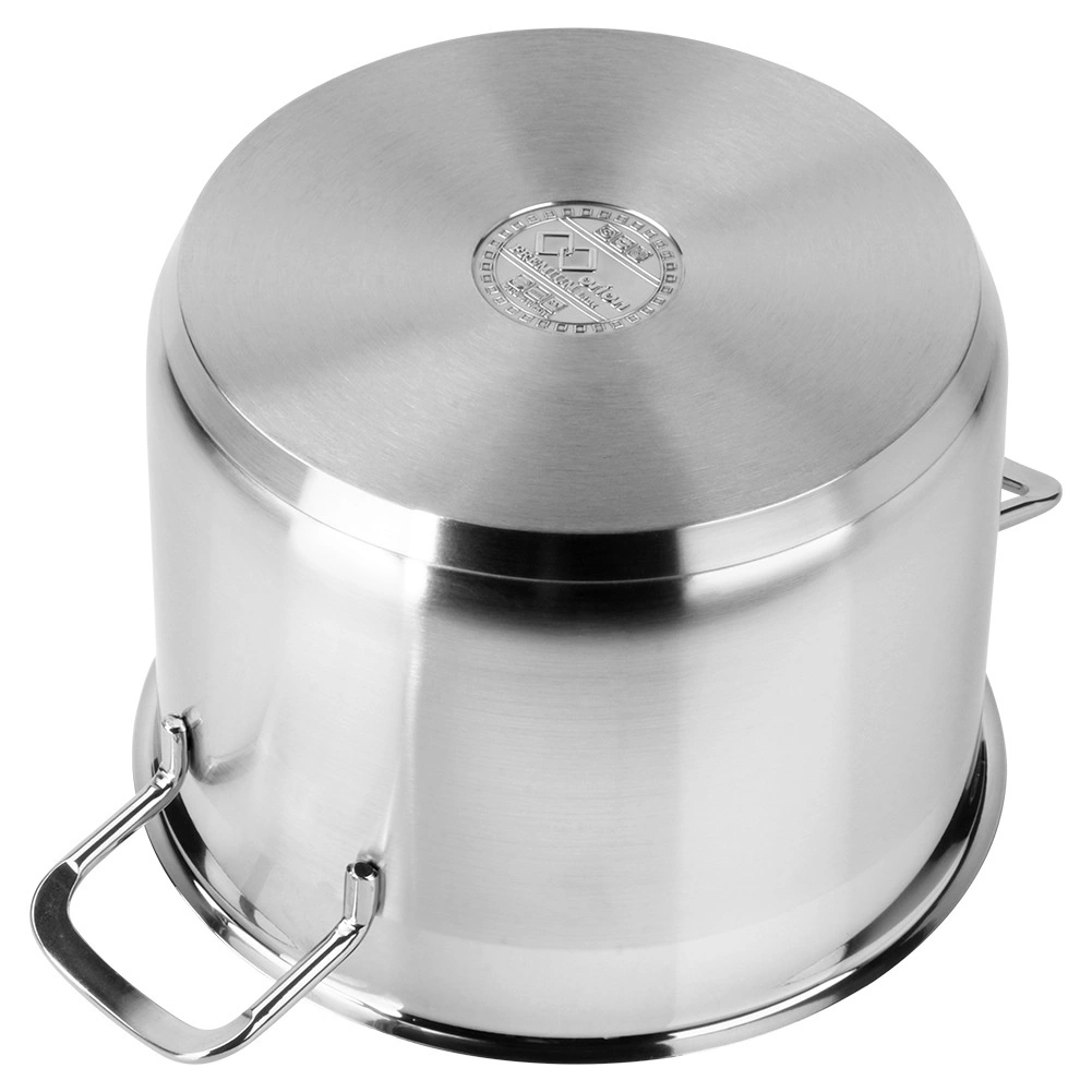 Casserole premium en acier inoxydable avec couvercle, idéale pour la cuisson quotidienne et le mijotage. En acier de qualité 18/10, dotée d’un fond akutermique multicouche pour une répartition rapide et uniforme de la chaleur, compatible avec tous les types de plaques, y compris l’induction. Elle possède des parois épaisses, des poignées confortables et peut être lavée au lave-vaisselle.