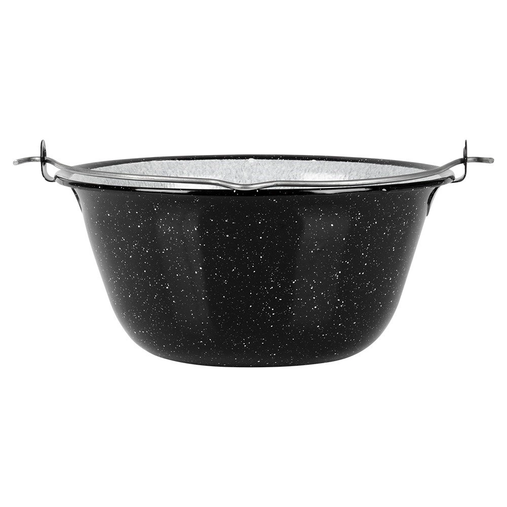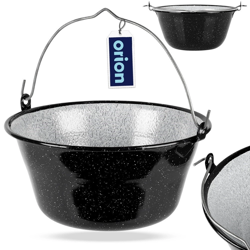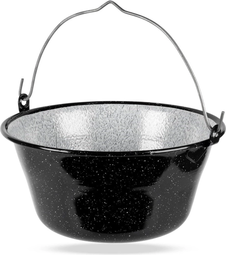 Chaudron suspendu robuste d’une capacité de 7,5 l en acier émaillé de qualité, idéal pour cuire sur le feu au jardin, près du grill ou en camping. Grâce à son large rebord et à sa poignée de suspension solide, il se suspend et se transporte facilement, et les plats y acquièrent une saveur et un arôme inimitables.