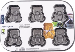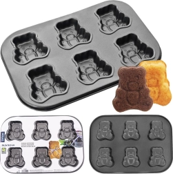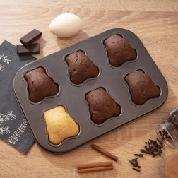 Ce moule de qualité aux dimensions 26,5 × 18,5 × 2,5 cm forme 6 oursons finement détaillés d’environ 6 × 5,5 cm. Grâce au revêtement antiadhésif, la pâte n’accroche pas et les pièces se démoulent facilement sans abîmer les formes. Parfait pour des oursons fourrés sucrés ou une simple génoise.