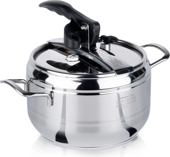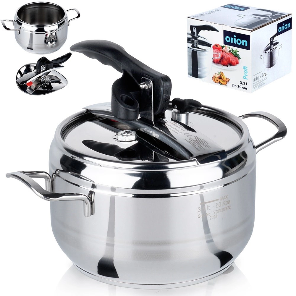 L’autocuiseur Profi 3,5 l est un allié fiable pour la cuisine quotidienne. La haute qualité de l’acier inoxydable, la fermeture solide et les éléments de sécurité garantissent un fonctionnement sûr, tandis que la cuisson sous pression réduit nettement le temps de préparation et la consommation d’énergie. La capacité totale est de 3,5 l ; le volume de travail recommandé est d’environ 2/3.
