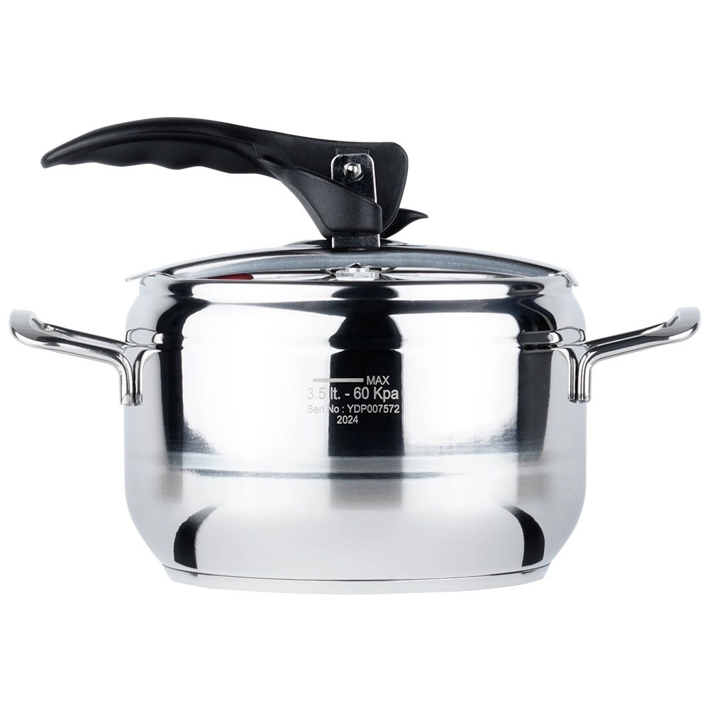 Autocuiseur compact en acier inoxydable de 3,5 l pour une cuisson sous pression rapide, économique et saine. Grâce au fond 3 couches, à la réglage de la pression et à deux soupapes de sécurité, il réduit le temps de préparation et économise de l’énergie. Compatible gaz, électricité, vitrocéramique, halogène et induction, et lavable au lave-vaisselle (sans couvercle).
