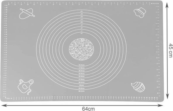 Ce tapis en silicone pour la cuisson est un assistant idéal dans votre cuisine. Grâce à ses dimensions de 64x45 cm, il offre suffisamment d’espace pour préparer différents types de pâtes et de biscuits. Le tapis est équipé de repères de mesure longitudinaux et circulaires qui facilitent la préparation et le dosage des ingrédients.