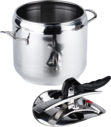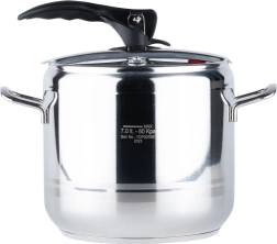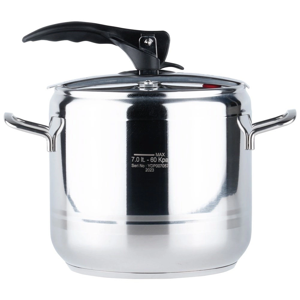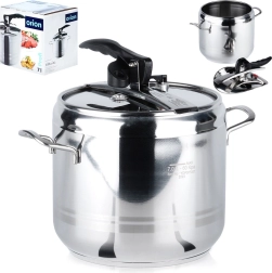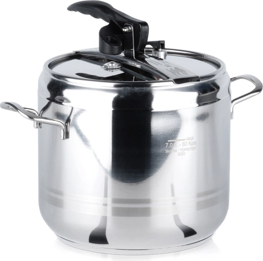 Autocuiseur pratique de 7 litres en acier inoxydable de qualité pour une cuisson rapide et économique. Grâce à la cuisson sous pression, il réduit le temps de préparation, économise de l’énergie, préserve la s saveurs et les nutriments et offre un fonctionnement sûr avec deux soupapes de sécurité et une construction robuste avec fond à 3 couches. Compatible avec tous les types de tables de cuisson, y compris l’induction.