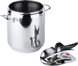 Sa conception massive en acier inoxydable de qualité, son fond sandwich 3 couches pour une distribution uniforme de la chaleur et la possibilité de régler la pression offrent d’excellents résultats sur les plaques à gaz, électriques, vitrocéramiques, halogènes et à induction. La casserole est facile à utiliser et, grâce à deux soupapes de sécurité et un mécanisme de verrouillage fiable, vous cuisinez l’esprit tranquille. La cuve passe au lave-vaisselle (le couvercle est recommandé au lavage manuel).
