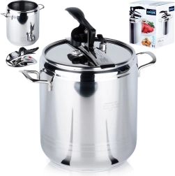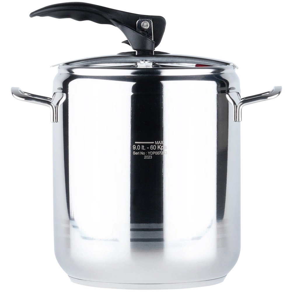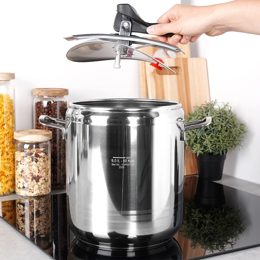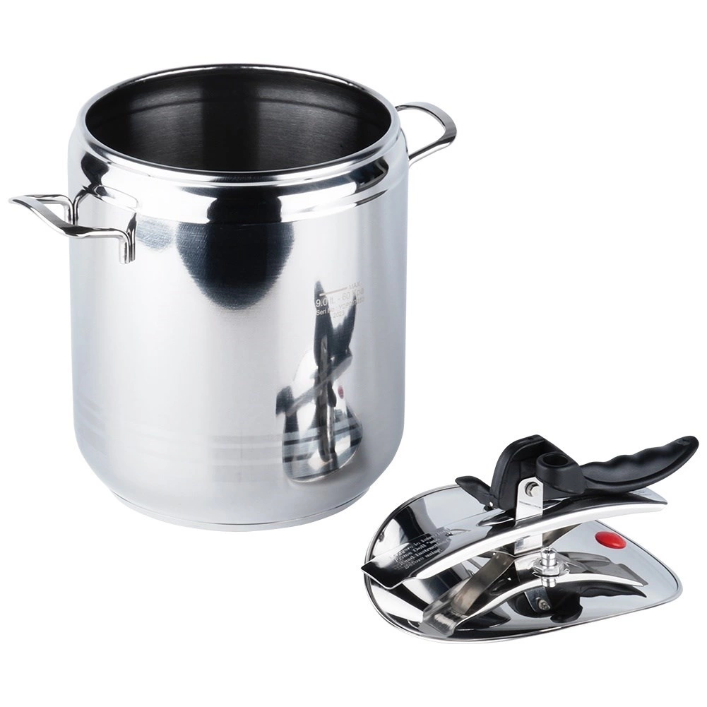 Autocuiseur en acier inoxydable de grande capacité de 9 l pour une cuisson rapide et économe sous pression. Il offre une préparation plus rapide des plats, une économie d’énergie, un fonctionnement sûr avec 2 soupapes de sécurité et un fond robuste 3 couches pour une chauffe uniforme. Compatible avec tous les types de plaques, y compris l’induction, et lavable au lave-vaisselle (sans le couvercle).