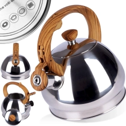 Cette bouilloire en acier inoxydable allie style classique et fonctionnalité moderne. Grâce à son corps en acier inoxydable, elle est durable, hygiénique et ne modifie pas le goût de l’eau. Le sifflet automatique vous avertit de l’ébullition, tandis que la poignée ergonomique en matériau résistant reste froide pendant l’utilisation.