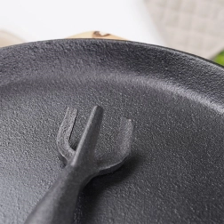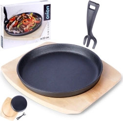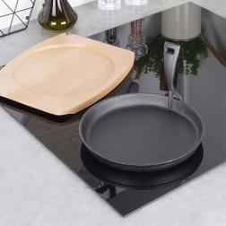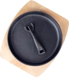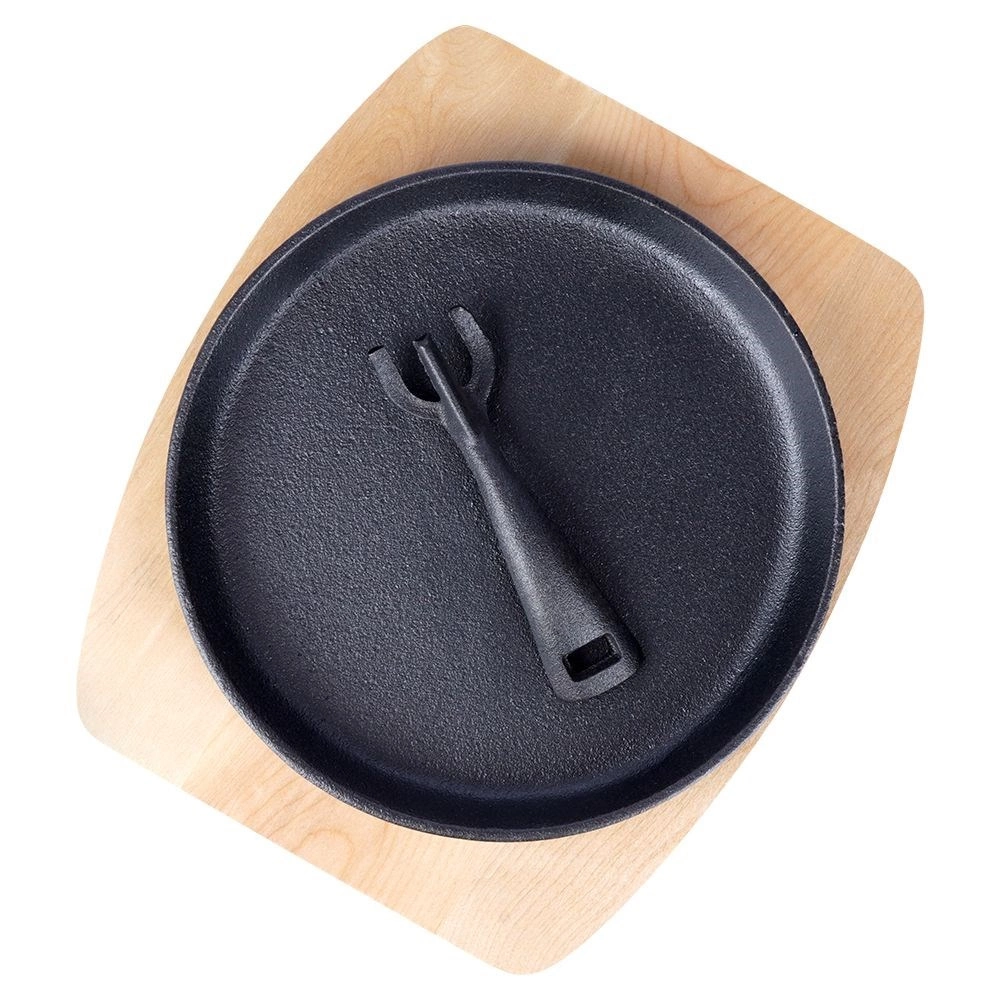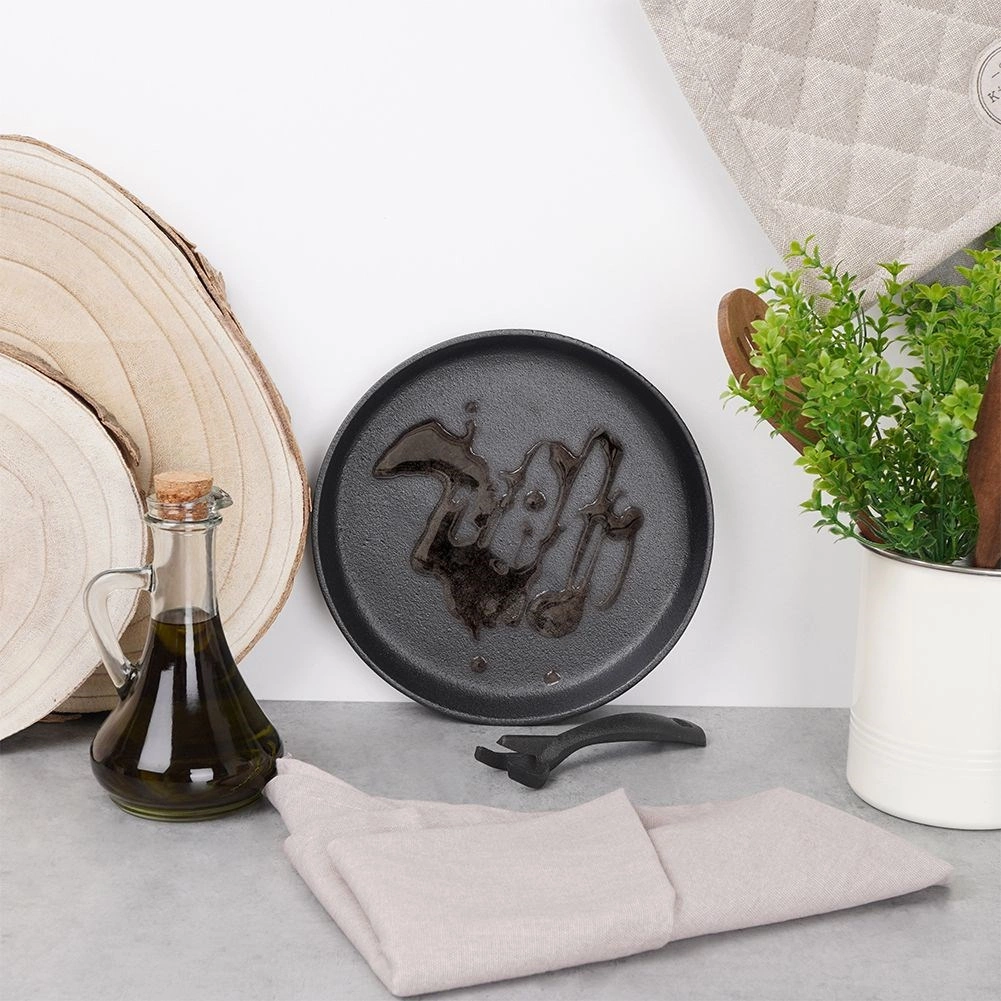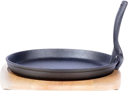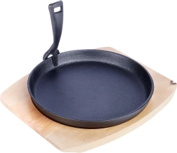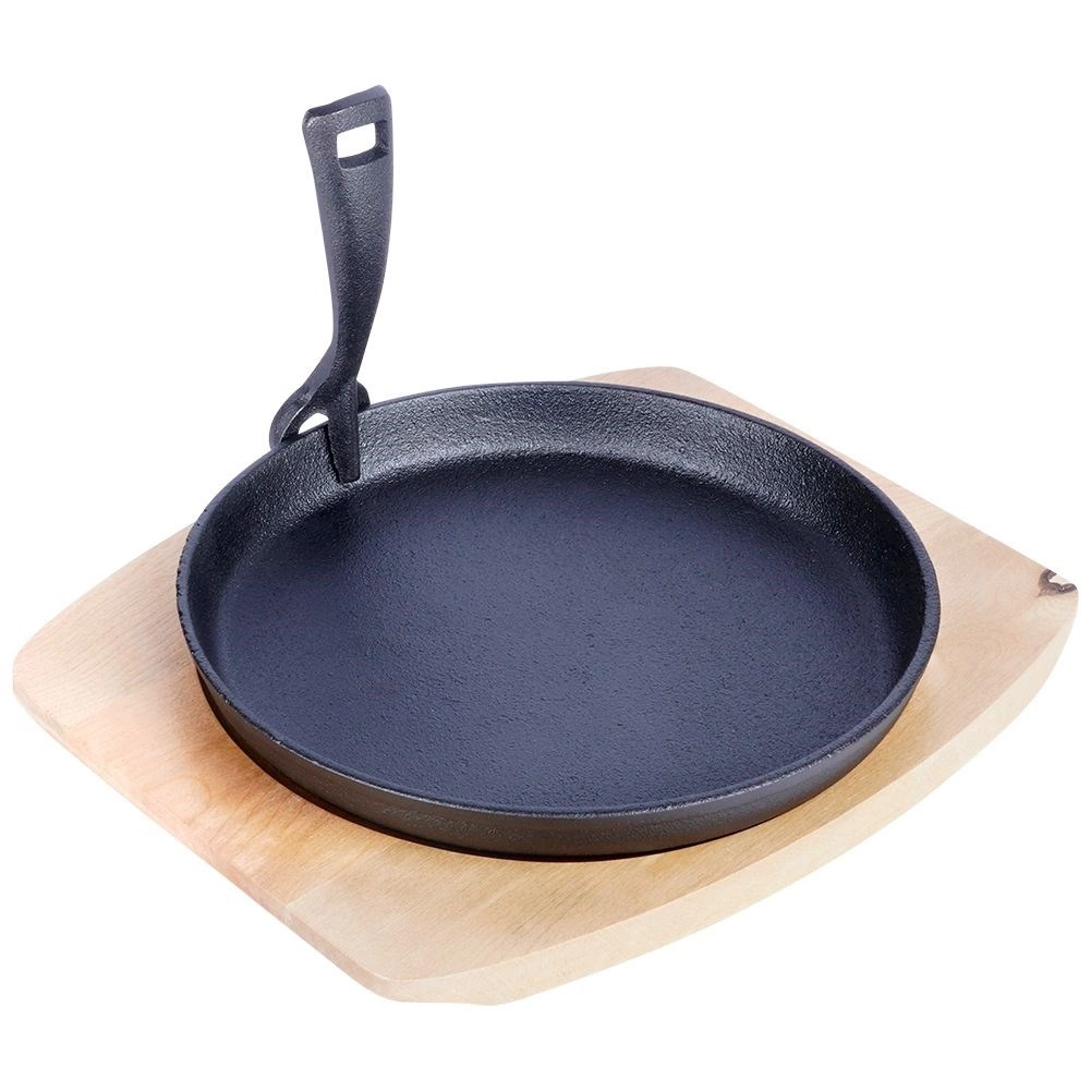 Poêle en fonte polyvalente pour la cuisine quotidienne et un service élégant directement à table. La fonte massive chauffe rapidement et uniformément, conserve longtemps la chaleur et maintient les plats chauds même pendant le service. Elle est accompagnée d’une planche en bois robuste qui protège les surfaces de la chaleur et facilite le transport.