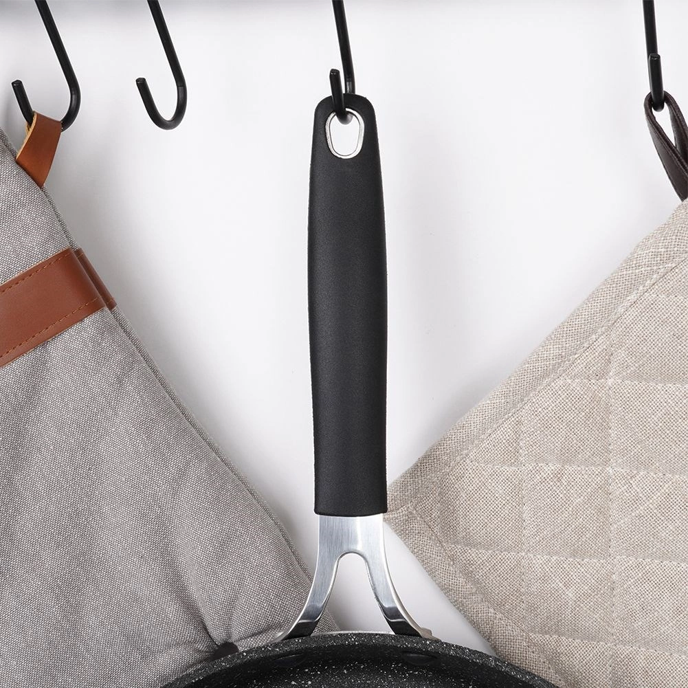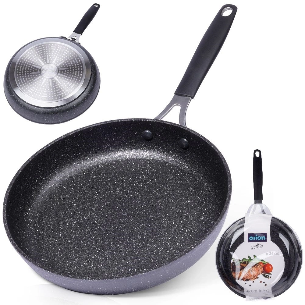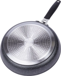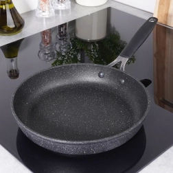 Poêle en granit antiadhésive 24 cm pour la cuisson quotidienne à la poêle et à l’étouffée, offrant une répartition uniforme de la chaleur, un corps en aluminium résistant avec revêtement aspect pierre et une poignée ergonomique. Compatible avec tous les types de plaques, y compris l’induction, elle convient aussi à la cuisson au four (poignée jusqu’à 200 °C) et permet de cuisiner avec un minimum de matière grasse grâce à son revêtement antiadhésif. Entretien facile, compatible lave-vaisselle.