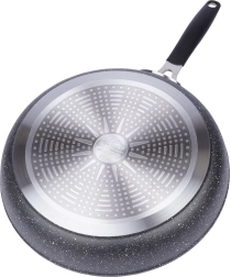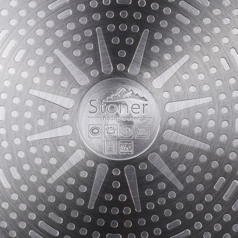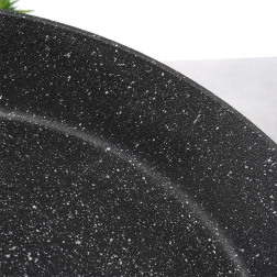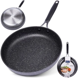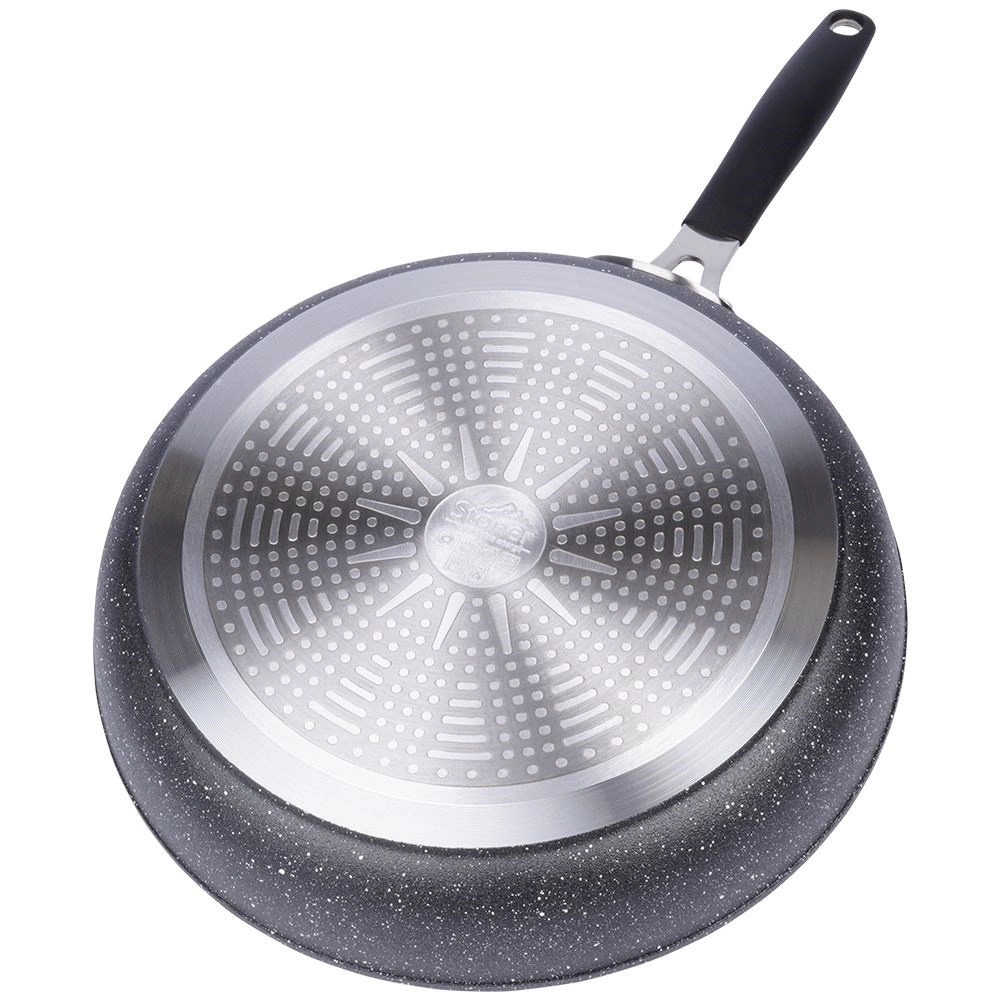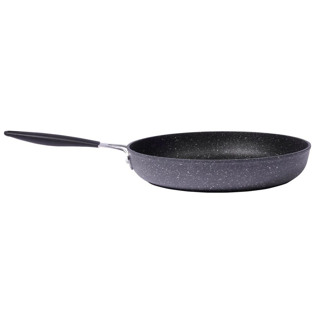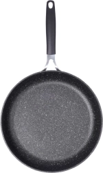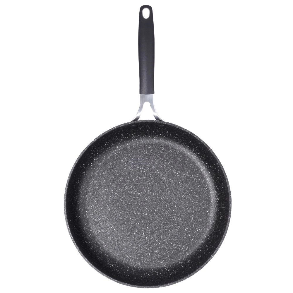 Poêle robuste en granit STONER de 28 cm de diamètre, en fonte d’aluminium avec revêtement pierre pour la cuisine quotidienne. Elle offre un revêtement antiadhésif pour une cuisson saine avec un minimum de matière grasse, une répartition de la chaleur rapide et homogène, une compatibilité avec tous les types de plaques, y compris l’induction et une poignée ergonomique avec trou de suspension. Adaptée au four (poignée jusqu’à 200 °C), facile à nettoyer et sans PFOA ni PTFE.