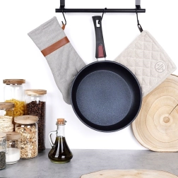 Prise en main confortable, manipulation sûre et possibilité de cuisson au four jusqu’à 220 °C. La poignée se retire facilement d’un simple clic.