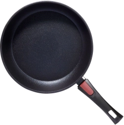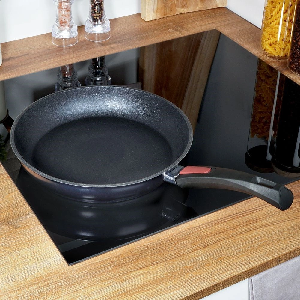 Découvrez l’aide culinaire du quotidien : une poêle de 28 cm de diamètre avec une couche antiadhésive à base de céramique renforcée au diamant. La surface chargée en particules de diamant conduit parfaitement la chaleur, n’interagit pas avec les aliments et permet une cuisson fiable, homogène et économe en énergie sans attacher.