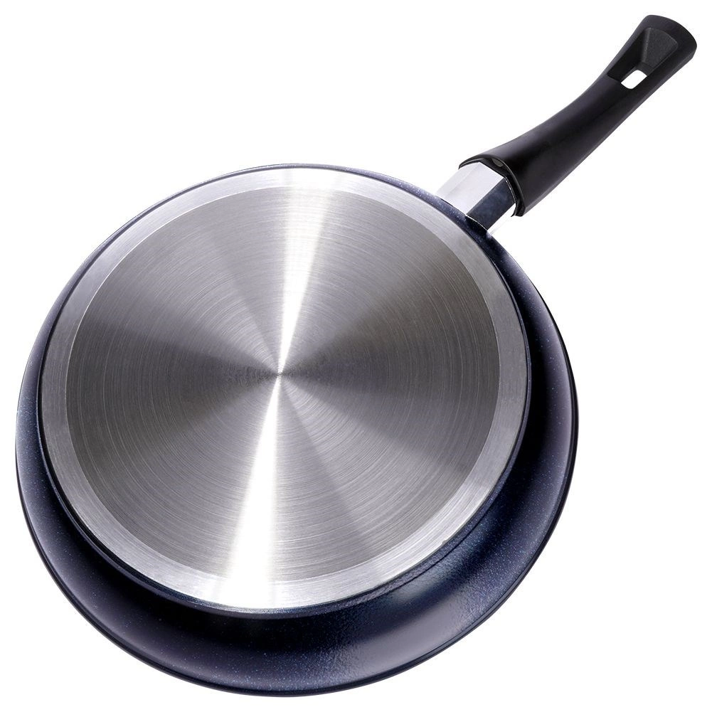 Le fond massif avec couche inductive assure une distribution uniforme de la chaleur et une stabilité sur tout type de table de cuisson.