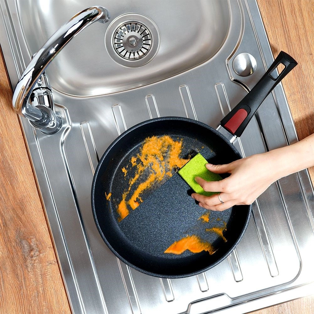 Grâce à sa poignée amovible, passez facilement de la plaque au four et gagnez de la place au rangement comme dans le lave-vaisselle. La poêle est compatible avec les plaques gaz, électriques, vitrocéramiques, halogènes et à induction, idéale pour tout foyer.
