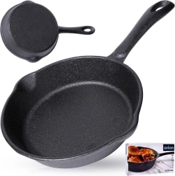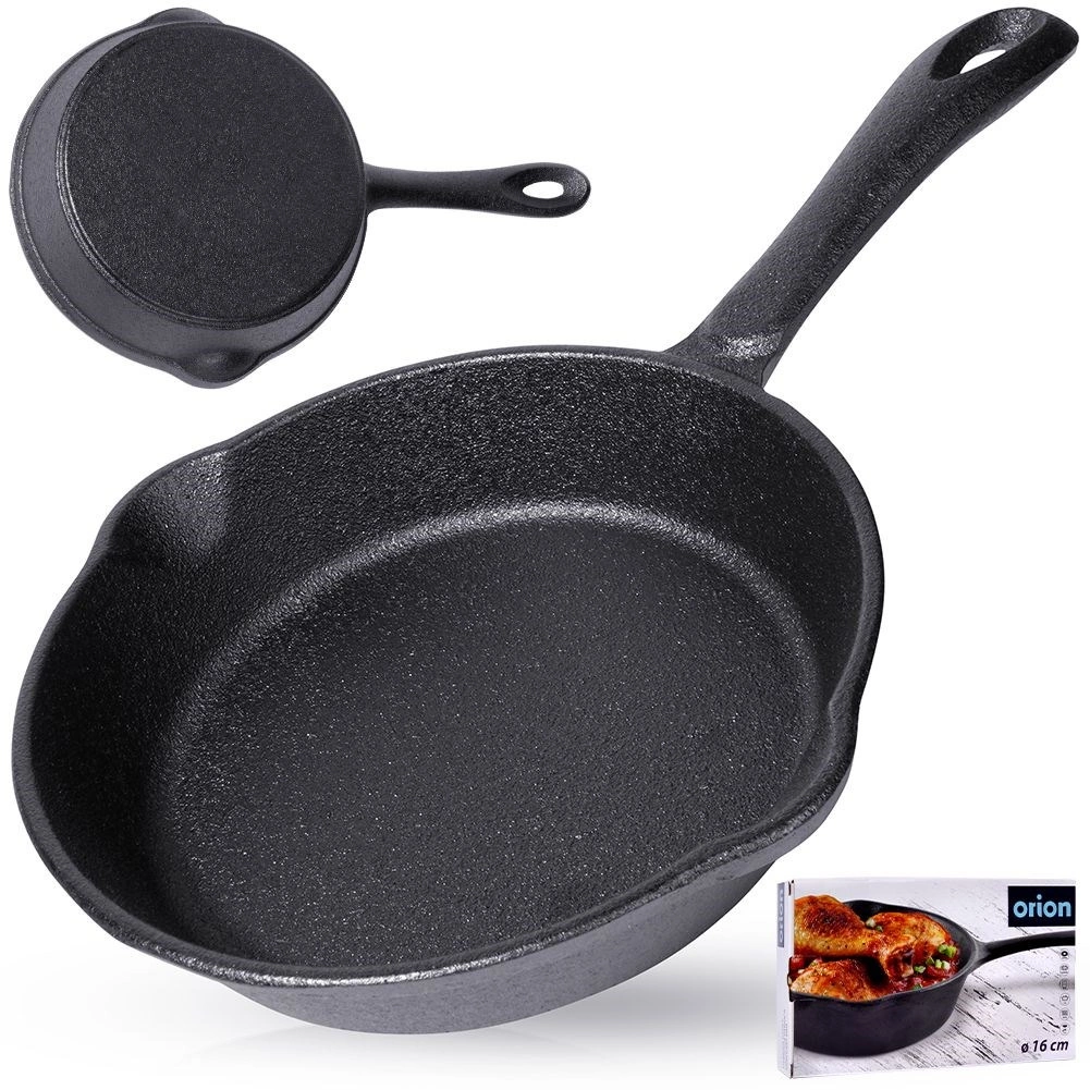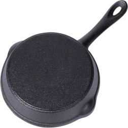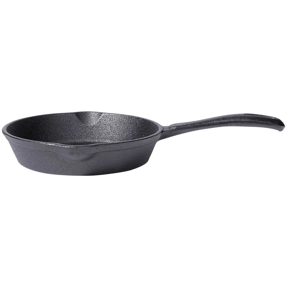 Poêle en fonte compacte de 16 cm de diamètre pour la cuisine quotidienne à la maison comme au gril. Grâce à sa construction massive, elle conduit et conserve parfaitement la chaleur, idéale pour la saisie à feu vif, la cuisson au four et le service directement à table depuis la poêle. Deux becs verseurs pratiques facilitent le transvasement des sauces et des jus. Compatible avec tous les types de plaques, y compris l’induction.