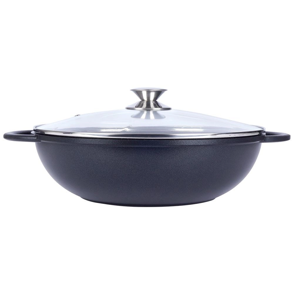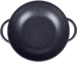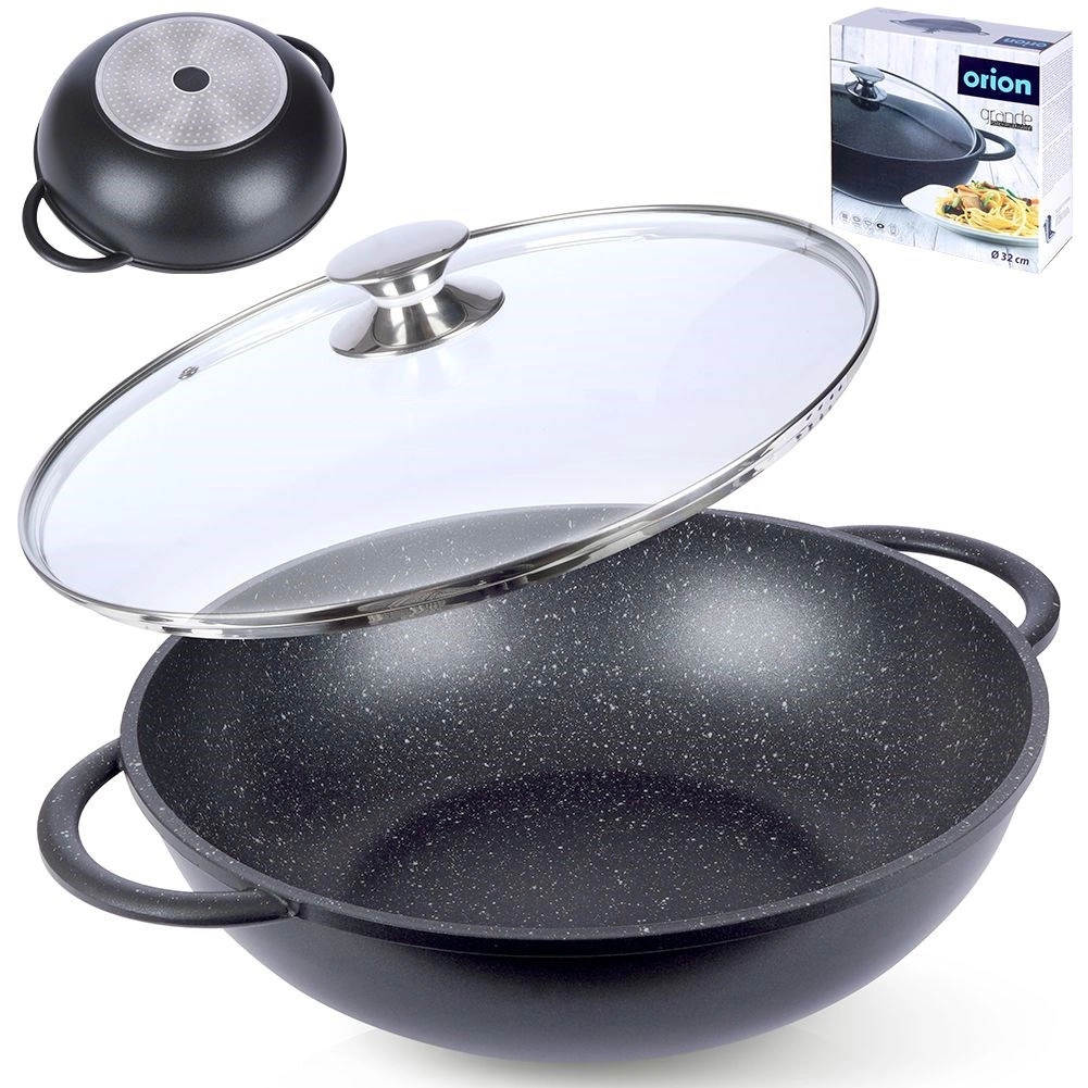 Découvrez une cuisson confortable avec ce wok en aluminium robuste doté d’un revêtement intérieur granit PFLUON, antiadhésif, résistant aux rayures et aux hautes températures. Grâce à sa large base et à ses parois hautes, il est idéal pour le stir‑fry, les légumes, la viande et les pâtes. Le couvercle en verre transparent avec bord inox et orifice d’évacuation de vapeur facilite le contrôle de la cuisson.