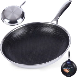 La poêle premium en acier COOKCELL de 28 cm de diamètre combine acier inoxydable et surface hybride antiadhésive à structure en nid d’abeille pour une cuisson rapide et uniforme. Elle est résistante aux rayures, supporte des températures élevées et convient à tous les types de plaques, y compris l’induction, ainsi qu’au four jusqu’à 260 °C. Facile à nettoyer, compatible lave-vaisselle, elle permet de cuisiner avec un minimum de matière grasse.