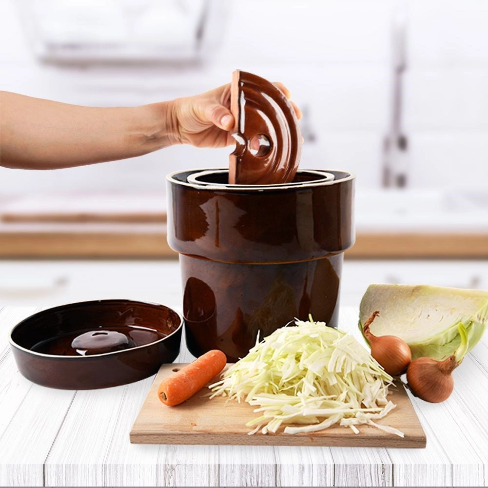 La surface émaillée est hygiénique et facile à nettoyer, et la céramique résiste parfaitement aux charges pour servir de nombreuses saisons. Idéal pour la préparation maison de choucroute, de cornichons fermentés et d’autres spécialités de légumes.