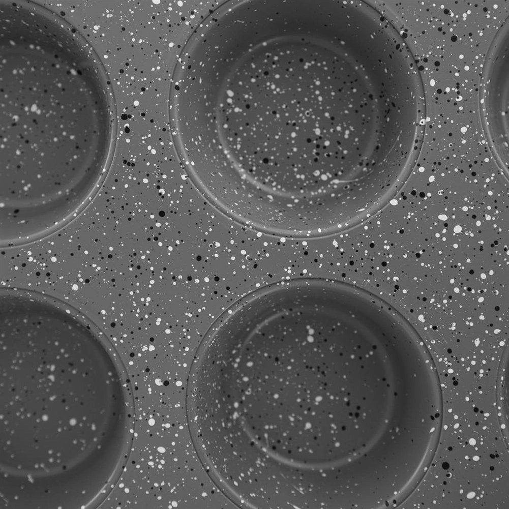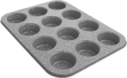 Moule à muffins pratique en granit pour cuire jusqu’à 12 pièces en une seule fournée. Grâce au revêtement antiadhésif en acier au carbone, la pâte n’attache pas et la cuisson est facile même avec un minimum de matière grasse. Le moule est résistant jusqu’à 230 °C, adapté aux fours à gaz et électriques, et peut être lavé au lave-vaisselle – idéal pour les muffins maison, cupcakes, mini desserts et biscuits.