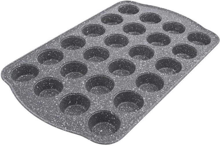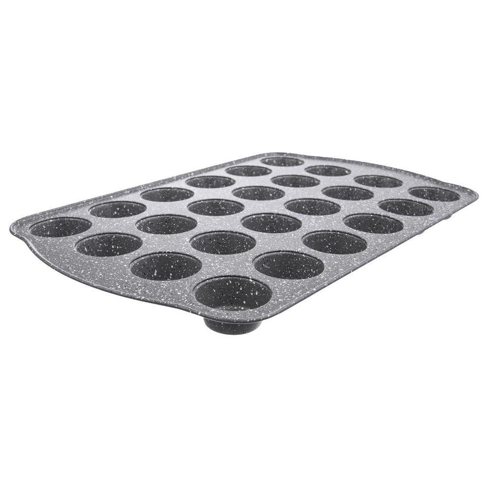 Ce moule rectangulaire ORION Grande à l’aspect granit est idéal pour la cuisson quotidienne de mini muffins, cupcakes et bouchées salées. Le revêtement antiadhésif permet de cuire avec un minimum de matières grasses et assure un démoulage facile sans attacher. Grâce à ses 24 cavités, vous préparez toute une fournée en une fois – rapidement, économiquement et avec des résultats réguliers.